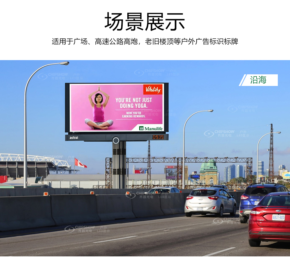 应用场景:龙门架屏,F屏,高速路广告屏,信息屏等交通用屏