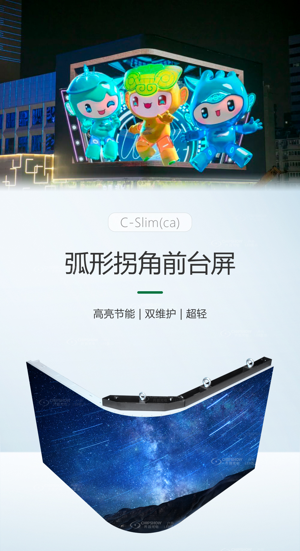 4.最小半径:此模组能拼最小半径为382mm外弧形屏,也可以做最小直径为764mm大小的圆柱屏。